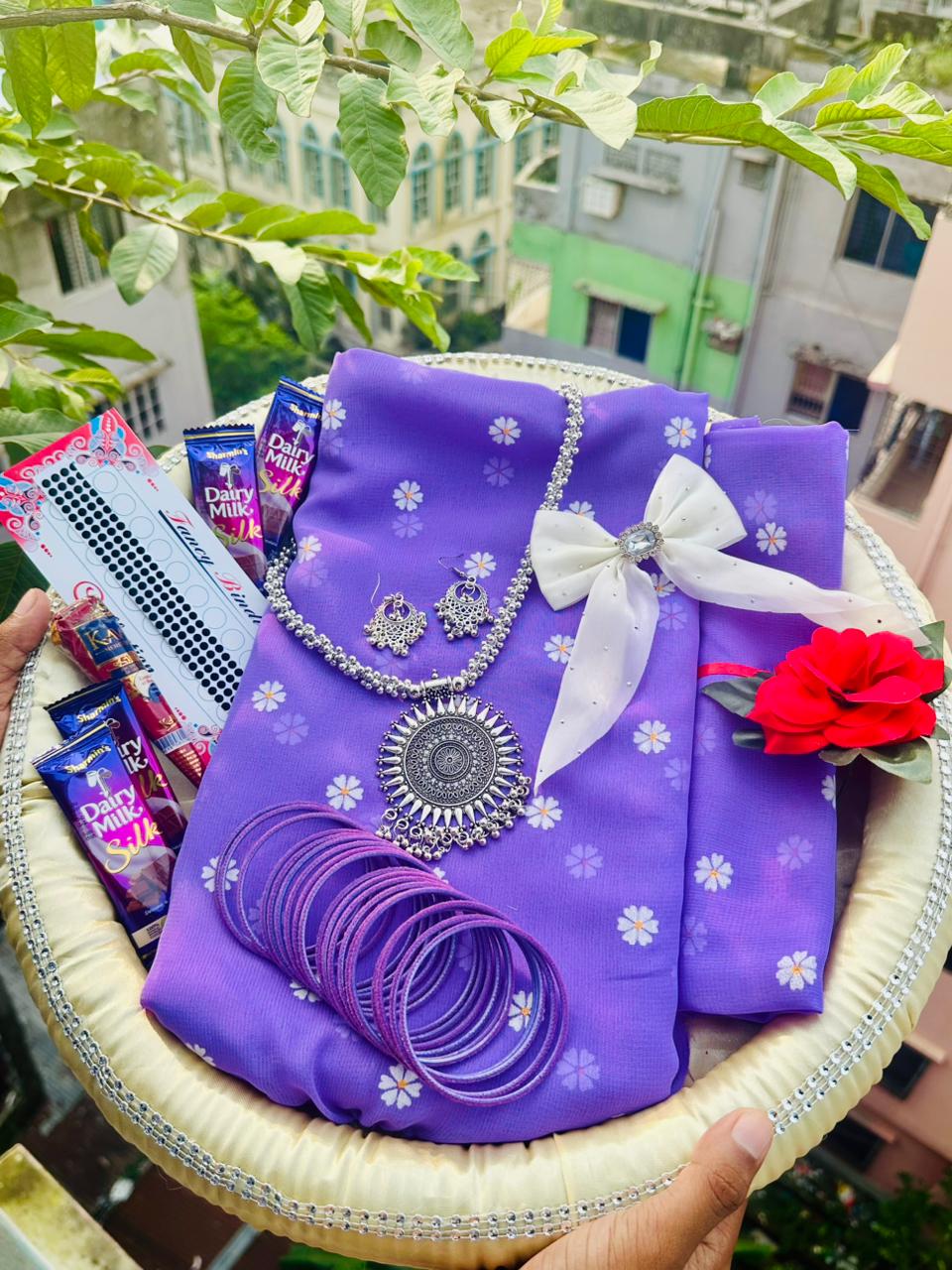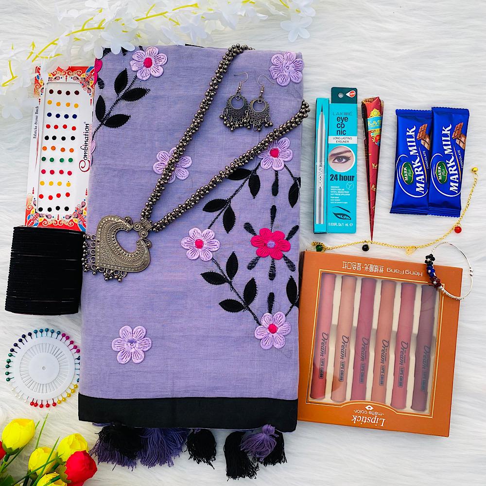Lavender Colour Saree Gift Combo